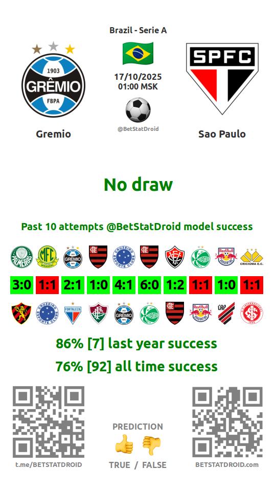 ✔ Гремио забивает в 9 матчах