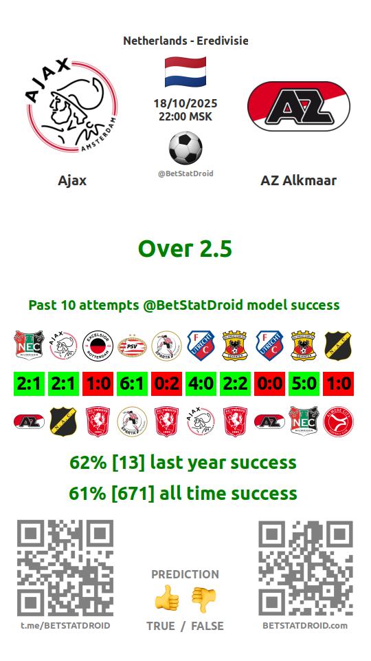 ✔ АЗ Алкмар забивает меньше 2,5 голов в 23 матчах