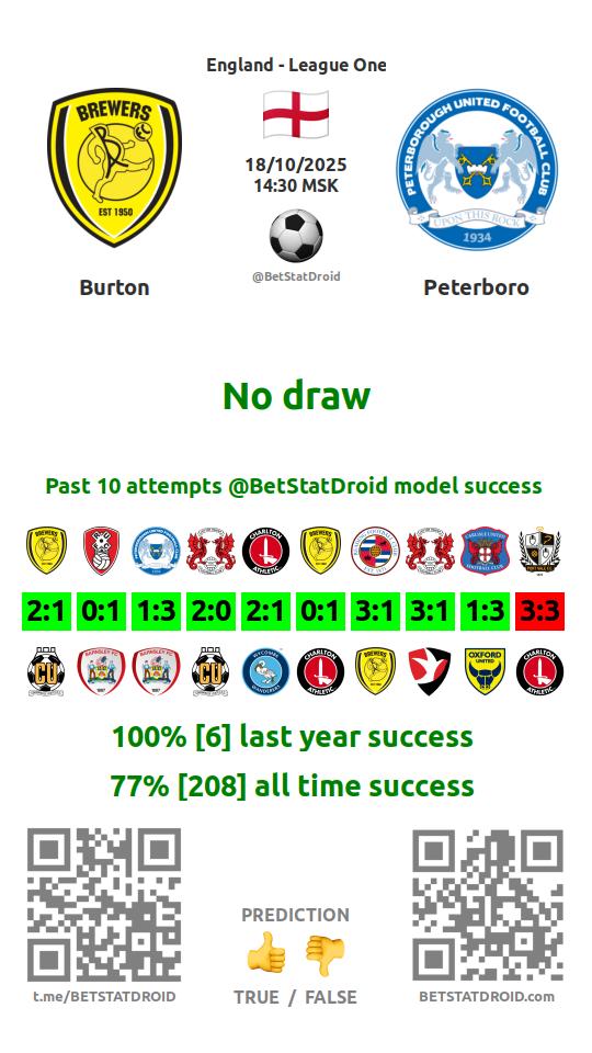 ✔ Бертон забивает меньше 2,5 голов в 14 матчах