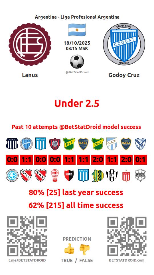 ✔ Ланус пропускает меньше 2,5 голов в 57 матчах