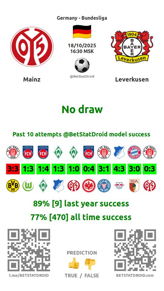 ✔ Майнц не забивает в 3 матчах