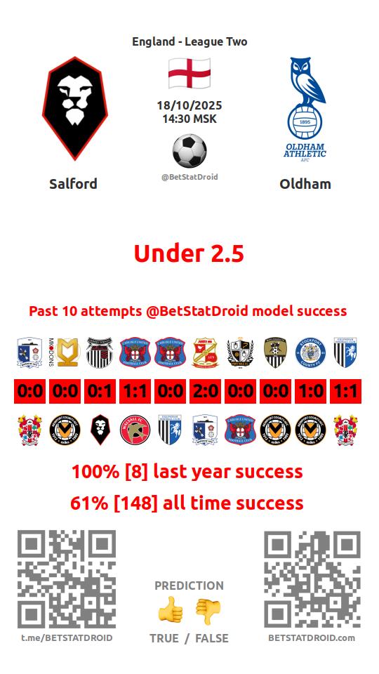 ✔ Солфорд Сити пропускает меньше 2,5 голов в 11 матчах