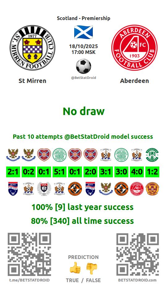 ✔ Сент-Миррен забивает меньше 2,5 голов в 12 матчах