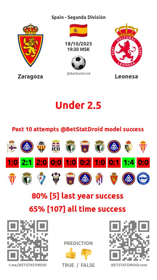 ✔ Сарагоса забивает меньше 1,5 голов в 5 матчах