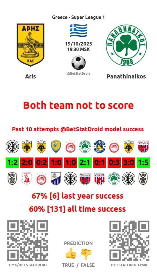 ✔ Арис забивает меньше 2,5 голов в 10 матчах