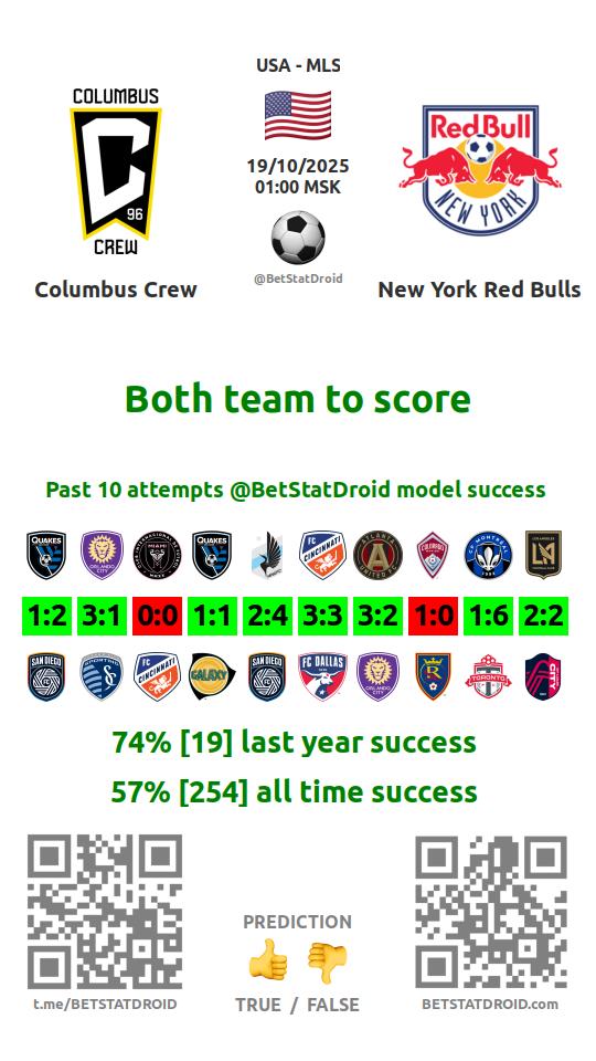 ✔ Нью-Йорк Ред Буллс забивает меньше 2,5 голов в 19 матчах