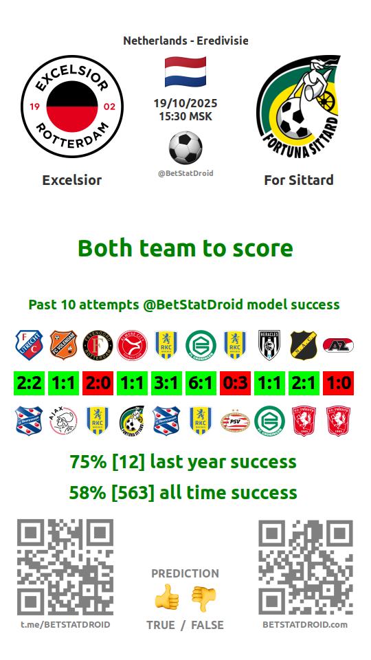 ✔ Эксельсиор забивает меньше 2,5 голов в 9 матчах