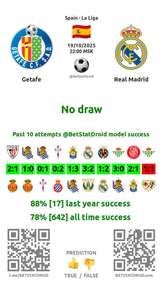 ✔ Хетафе забивает меньше 2,5 голов в 28 матчах