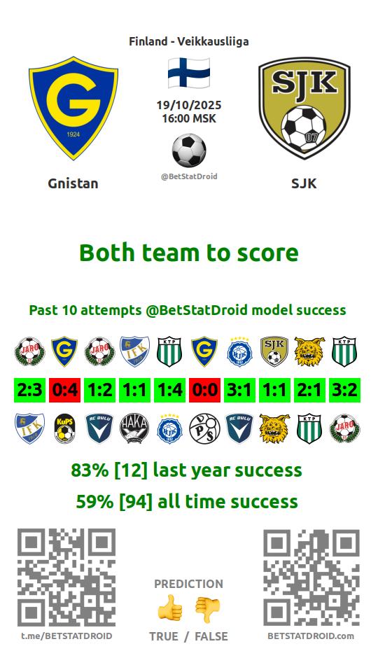 ✔ Гнистан пропускает больше 1,5 голов в 6 матчах