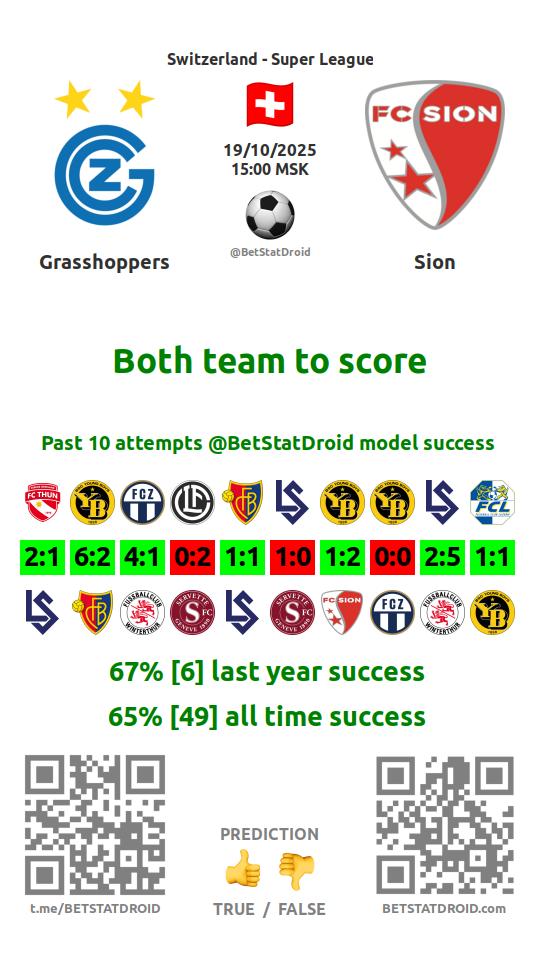 ✔ Грассхоппер забивает больше 1,5 голов в 6 матчах