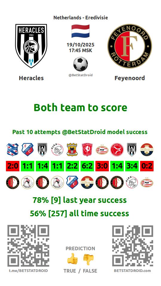 ✔ Хераклес забивает меньше 2,5 голов в 31 матчах