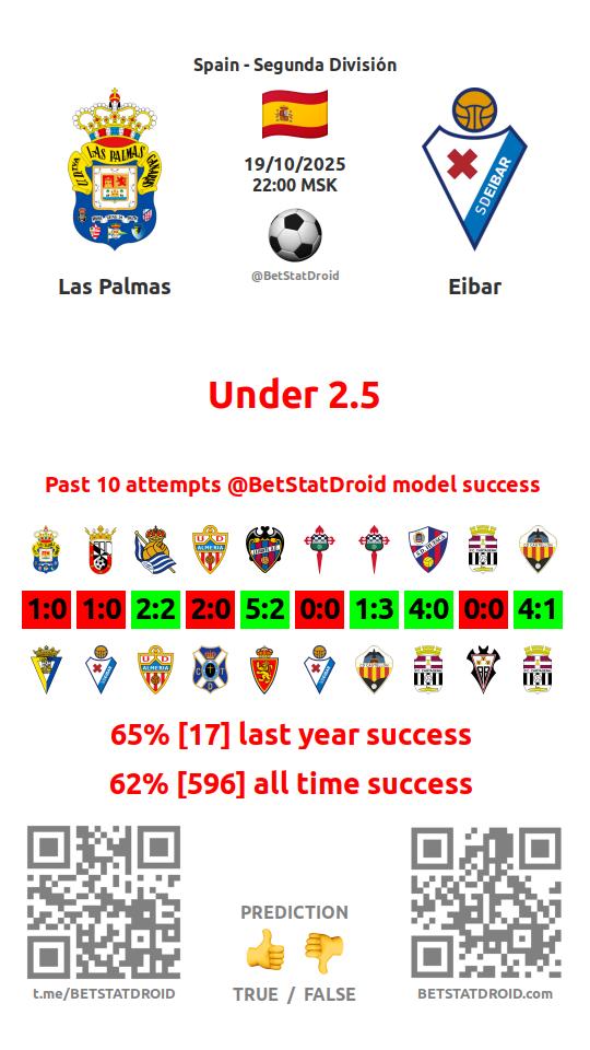 ✔ Лас-Пальмас забивает меньше 2,5 голов в 19 матчах