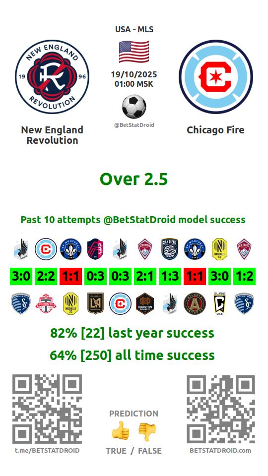 ✔ Нью-Инглэнд Революшн забивает меньше 2,5 голов в 11 матчах