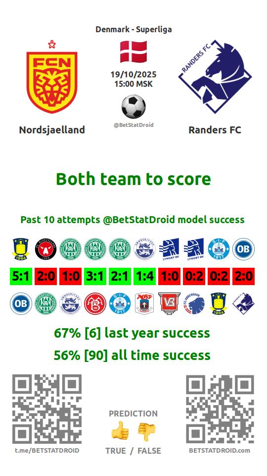 ✔ Нордшелланд забивает меньше 1,5 голов в 5 матчах