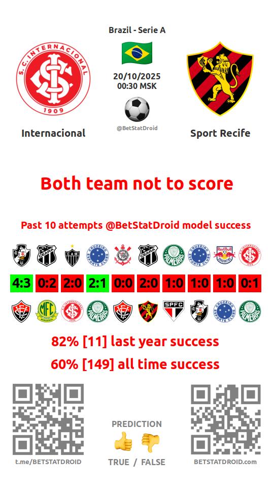 ✔ Спорт Ресифи забивает меньше 2,5 голов в 41 матчах