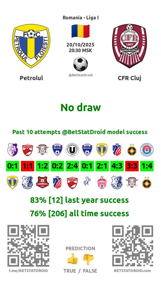 ✔ Петролул-52 забивает меньше 1,5 голов в 7 матчах