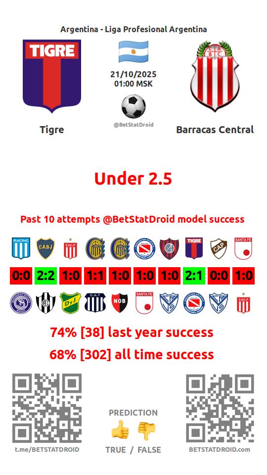 ✔ Тигре забивает меньше 2,5 голов в 23 матчах