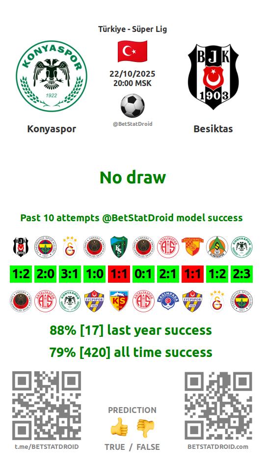 ✔ Бешикташ забивает меньше 2,5 голов в 19 матчах