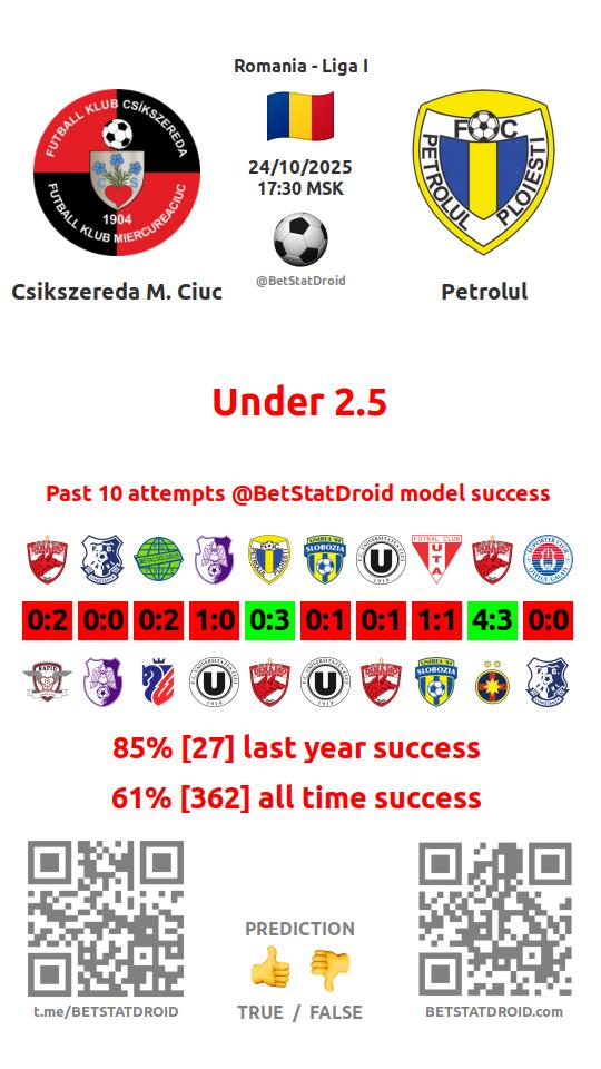 ✔ Петролул-52 забивает меньше 2,5 голов в 10 матчах