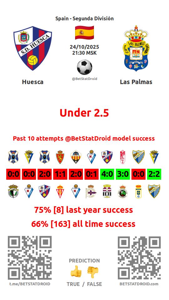 ✔ Уэска забивает меньше 2,5 голов в 9 матчах