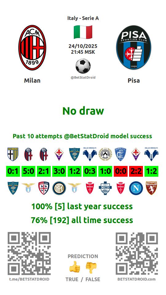 ✔ Милан пропускает меньше 2,5 голов в 23 матчах