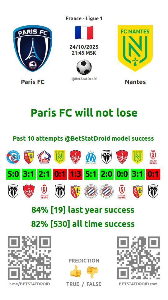 ✔ Нант забивает меньше 2,5 голов в 19 матчах