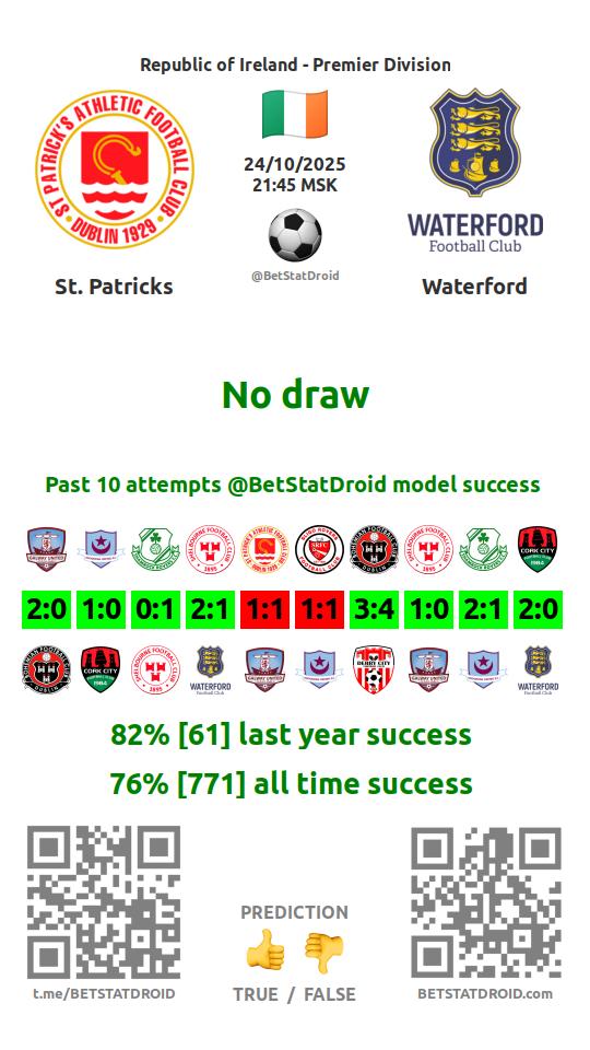 ✔ Уотерфорд Юнайтед забивает меньше 2,5 голов в 9 матчах