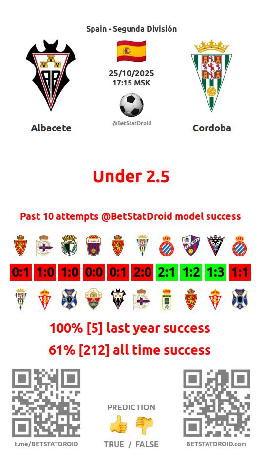 ✔ Кордоба забивает меньше 2,5 голов в 12 матчах