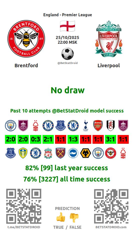 ✔ Брентфорд забивает меньше 1,5 голов в 5 матчах