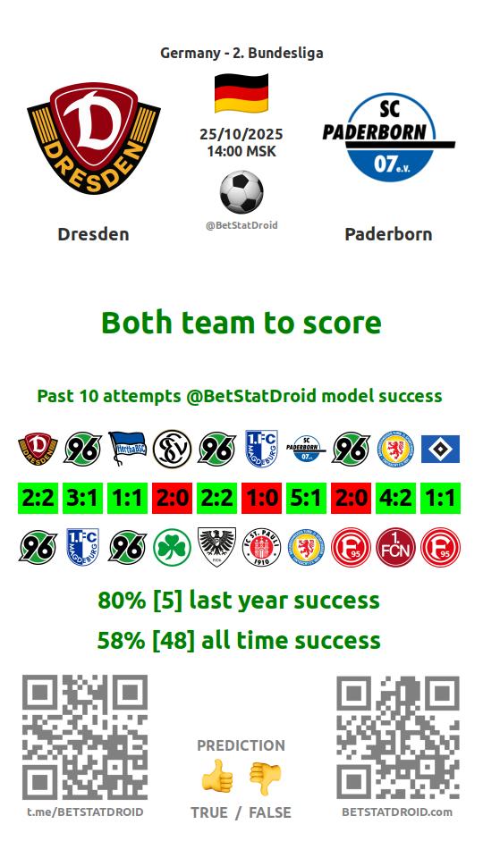 ✔ Динамо Дрезден пропускает больше 1,5 голов в 5 матчах