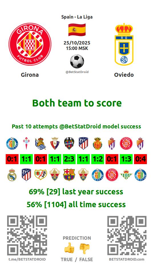 ✔ Жирона забивает меньше 2,5 голов в 29 матчах