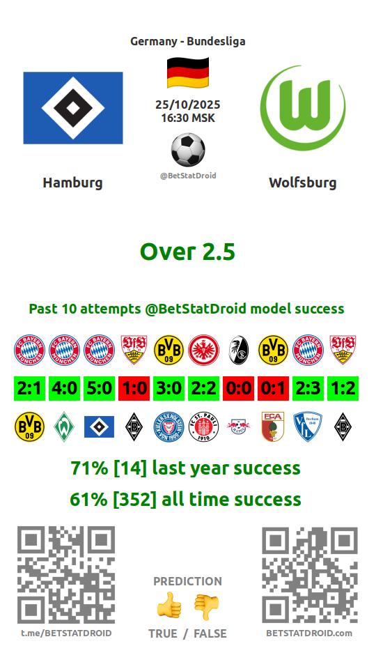 ✔ Вольфсбург забивает меньше 2,5 голов в 8 матчах