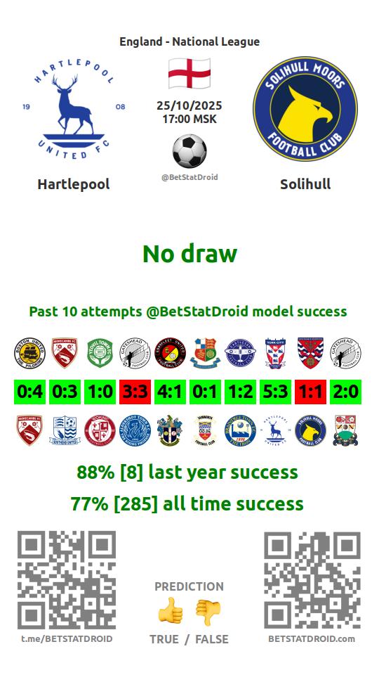 ✔ Хартлпул забивает меньше 1,5 голов в 5 матчах