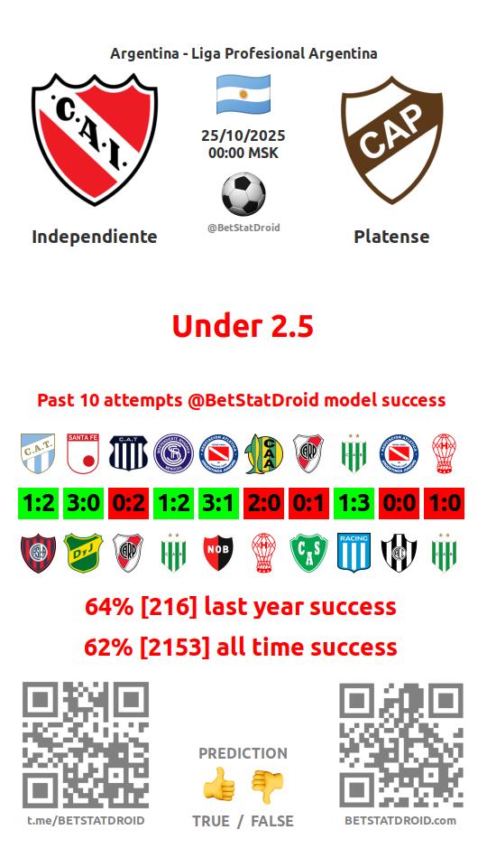 ✔ Платенсе забивает меньше 2,5 голов в 51 матчах