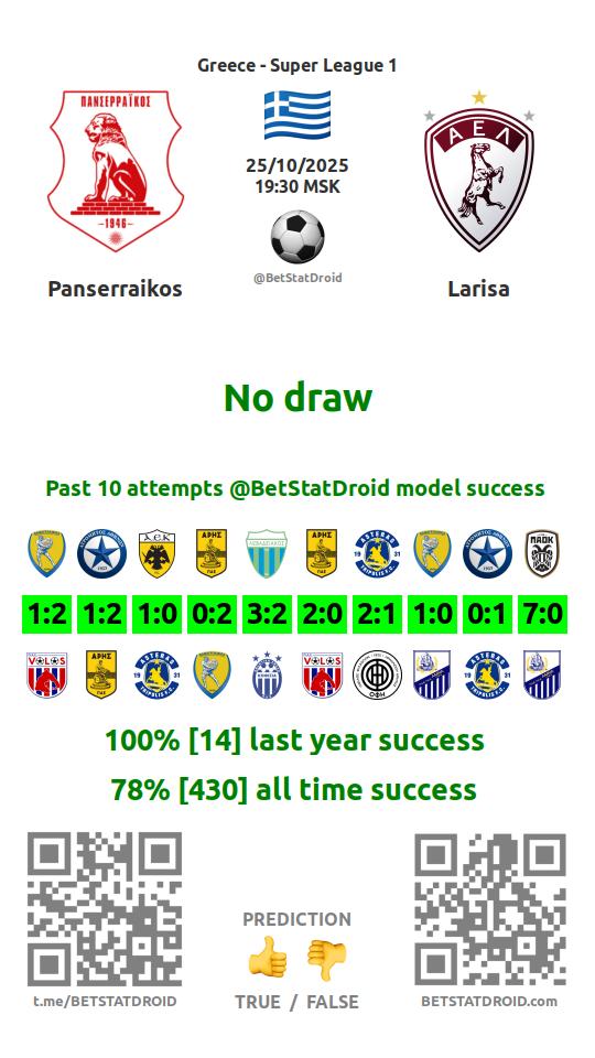 ✔ Лариса забивает меньше 2,5 голов в 8 матчах