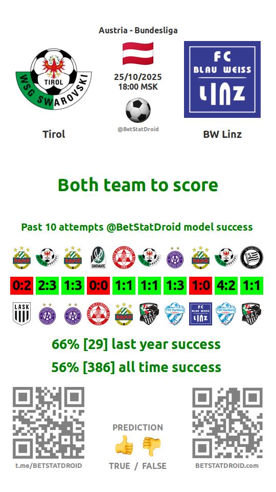 ✔ Тироль забивает в 10 матчах