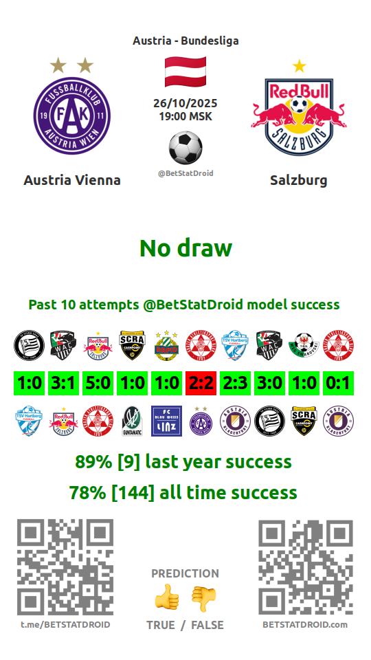 ✔ Аустрия забивает меньше 1,5 голов в 7 матчах