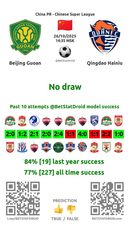 ✔ Бэйцзин Гоань пропускает больше 1,5 голов в 5 матчах