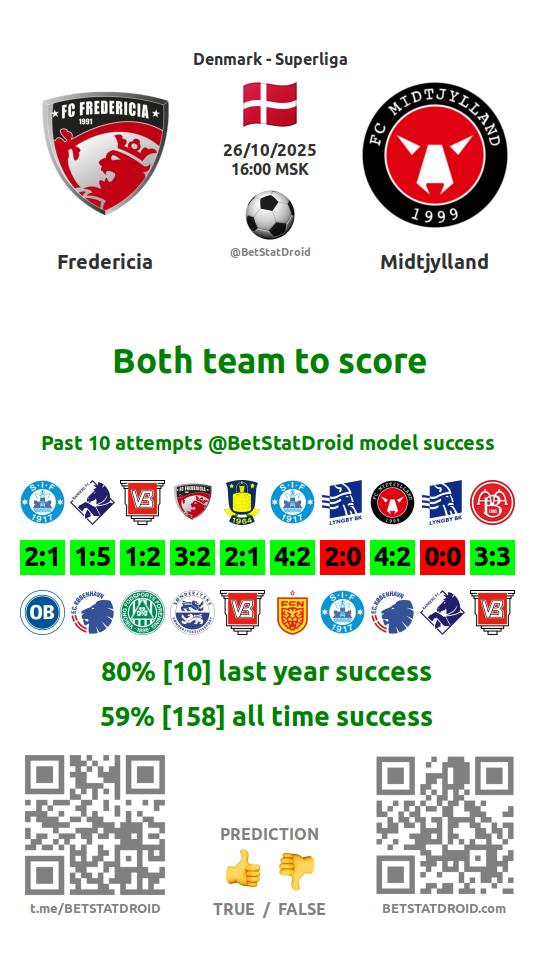 ✔ Мидтьюлланд пропускает меньше 1,5 голов в 6 матчах