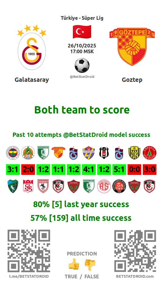 ✔ Галатасарай забивает больше 1,5 голов в 7 матчах