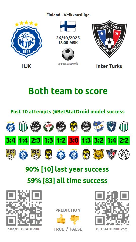 ✔ Интер Турку забивает меньше 2,5 голов в 9 матчах