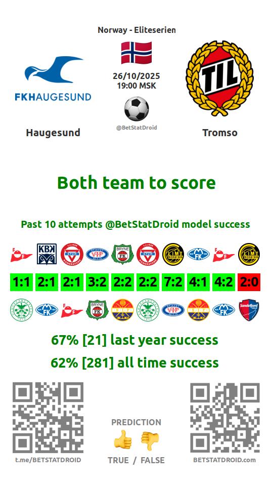 ✔ Тромсе забивает меньше 2,5 голов в 23 матчах