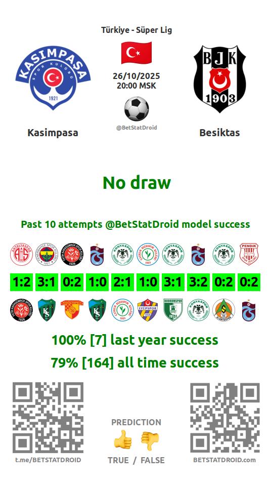 ✔ Касымпаша забивает меньше 2,5 голов в 12 матчах