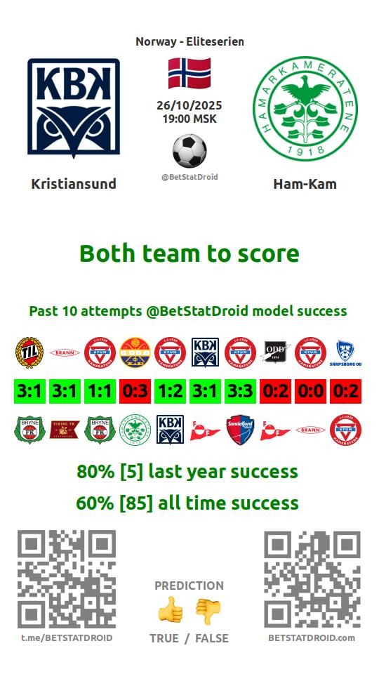 ✔ Кристиансунд забивает меньше 2,5 голов в 13 матчах