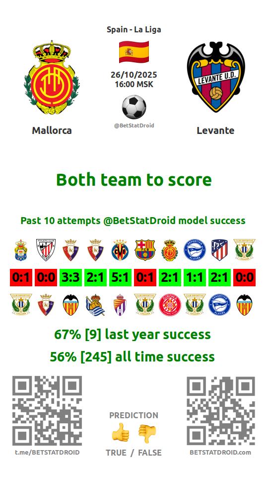 ✔ Мальорка забивает меньше 2,5 голов в 10 матчах