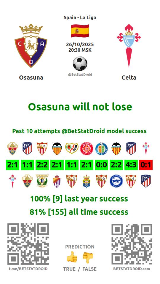 ✔ Осасуна забивает меньше 2,5 голов в 9 матчах