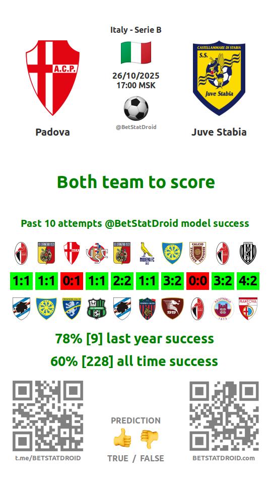 ✔ Падова пропускает меньше 2,5 голов в 14 матчах