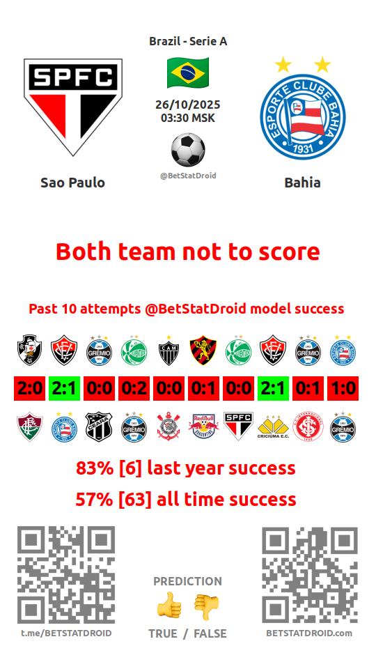 ✔ Баия забивает меньше 2,5 голов в 10 матчах