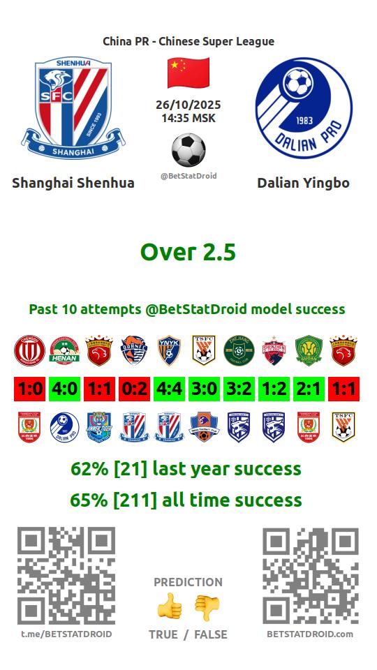 ✔ Далянь Инбо забивает меньше 2,5 голов в 17 матчах
