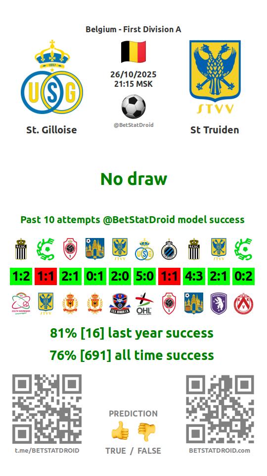 ✔ Сент-Труйден забивает меньше 2,5 голов в 8 матчах